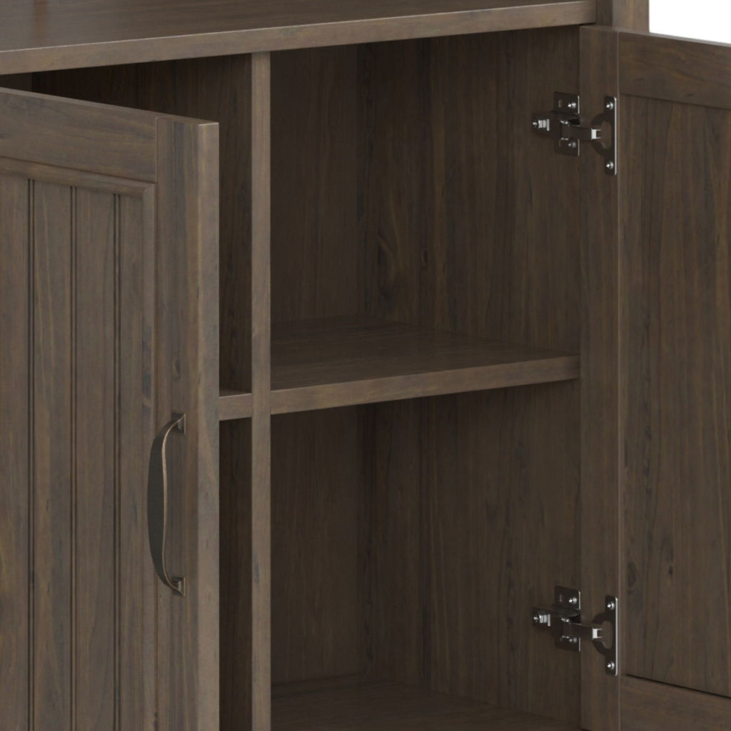 - Features two doors with interior storage and two large open adjustable shelves, Anti -tip hardware