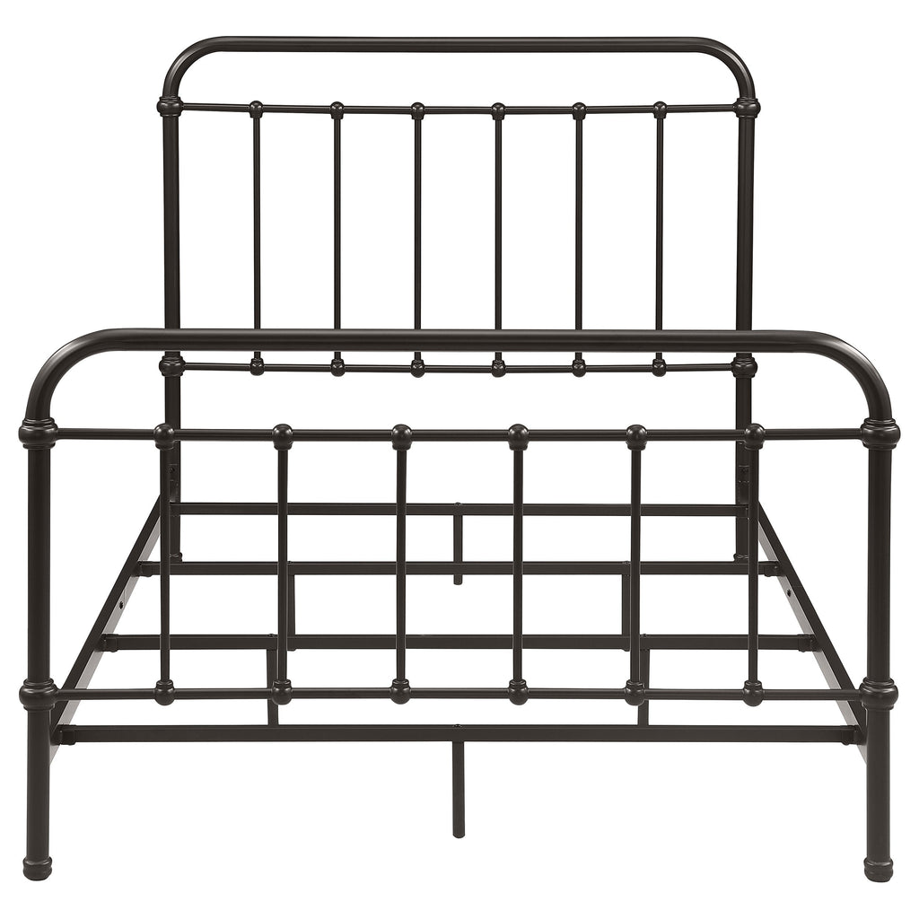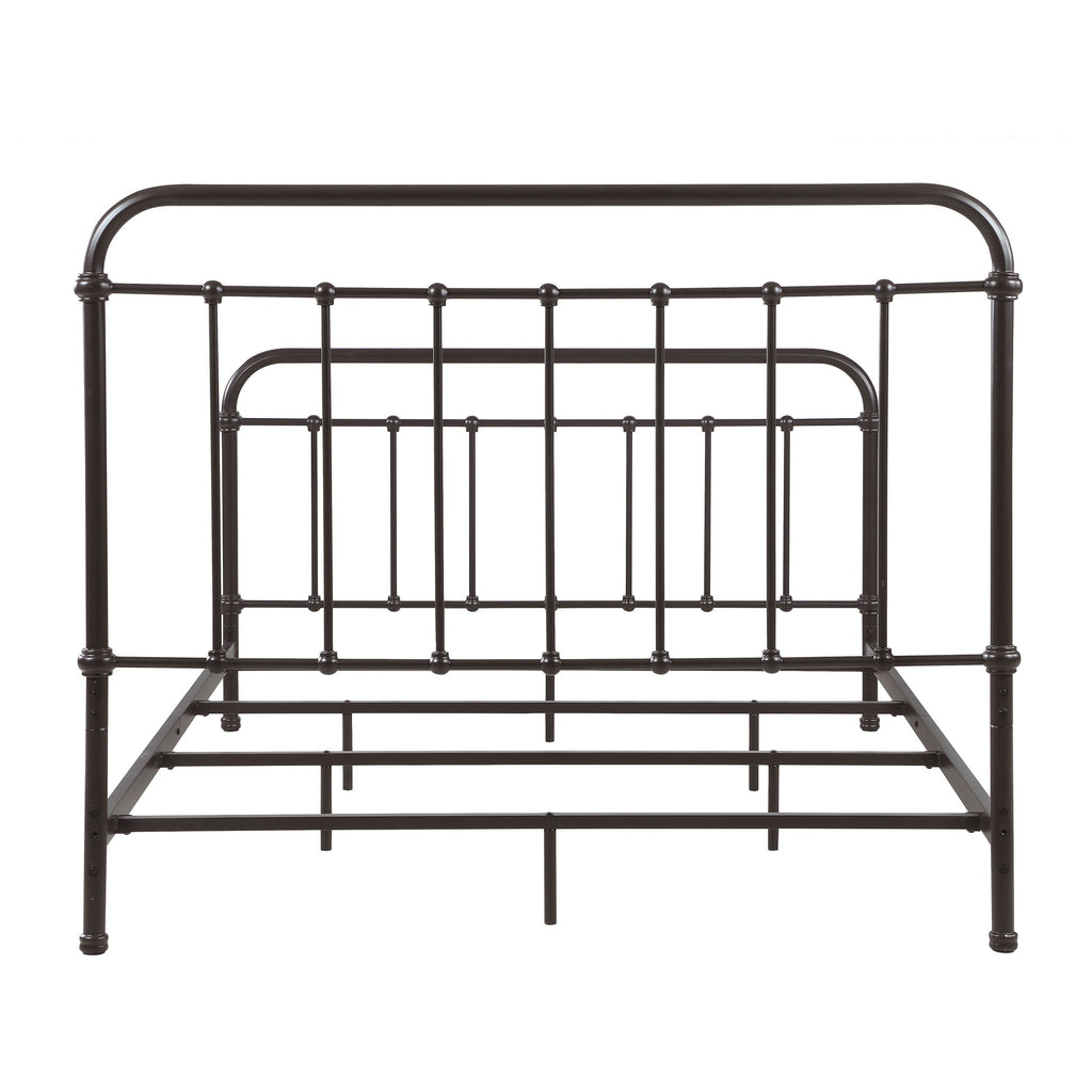 Bring vintage-inspired charm to your bedroom with this farmhouse-style metal bed. Designed with a sturdy heavy-gauge metal frame, it features a dark bronze powder-coated finish that enhances its timeless appeal. The headboard and footboard showcase a vertical spindle design with continuous weld construction for added strength and durability. Built for stability and long-lasting use, this bed adds rustic elegance to both modern and classic interiors.