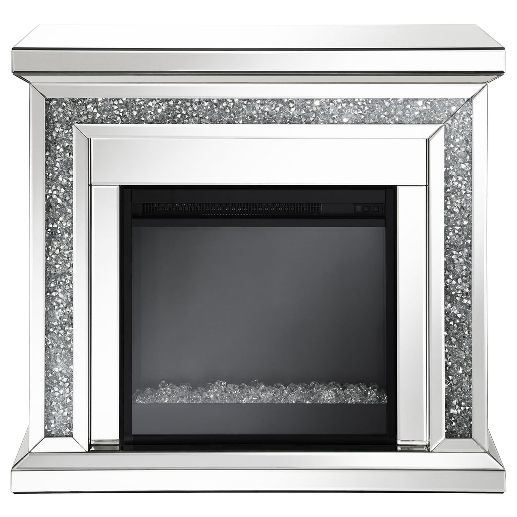 Glimmering, crushed crystals lend a luxurious accent to this glam fireplace. Covered by mirror tiles, trims and beveled edges, this freestanding electric fireplace offers a relaxing glow to a space. For a bit of warmth, turn on the heater element for a more realistic effect. A mantel top invites you to showcase decor or even keep additional candles for an even further romantic look. This chic fireplace addition can be positioned practically anywhere in a room, heating spaces up to 400 square feet.