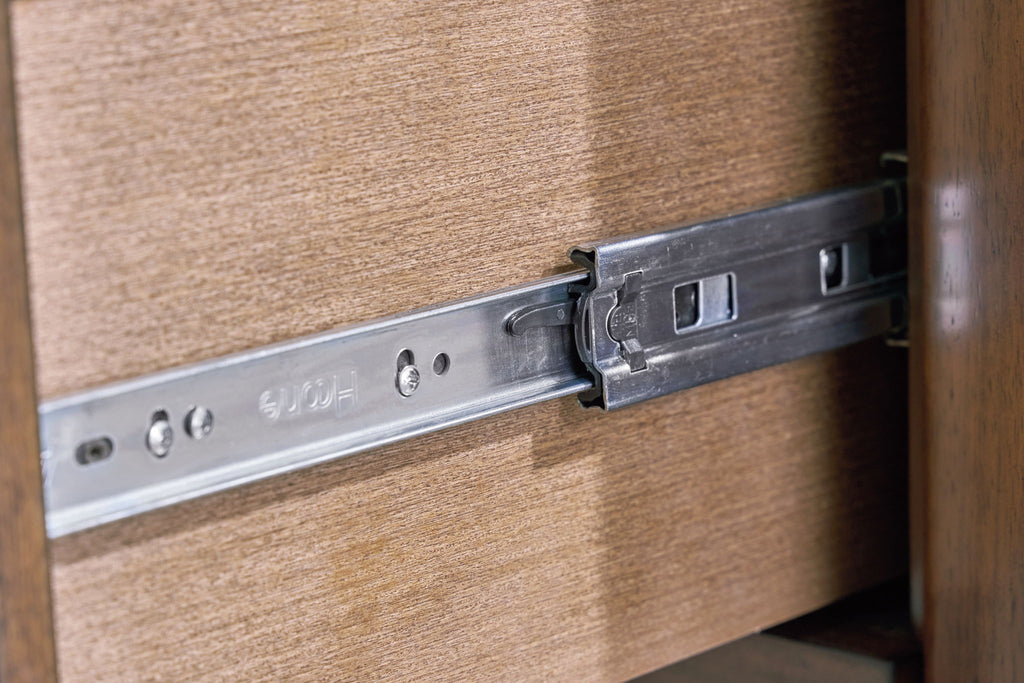 - 5 drawers with fully finished interior, dovetail construction and heavy duty ball-bearing side glides