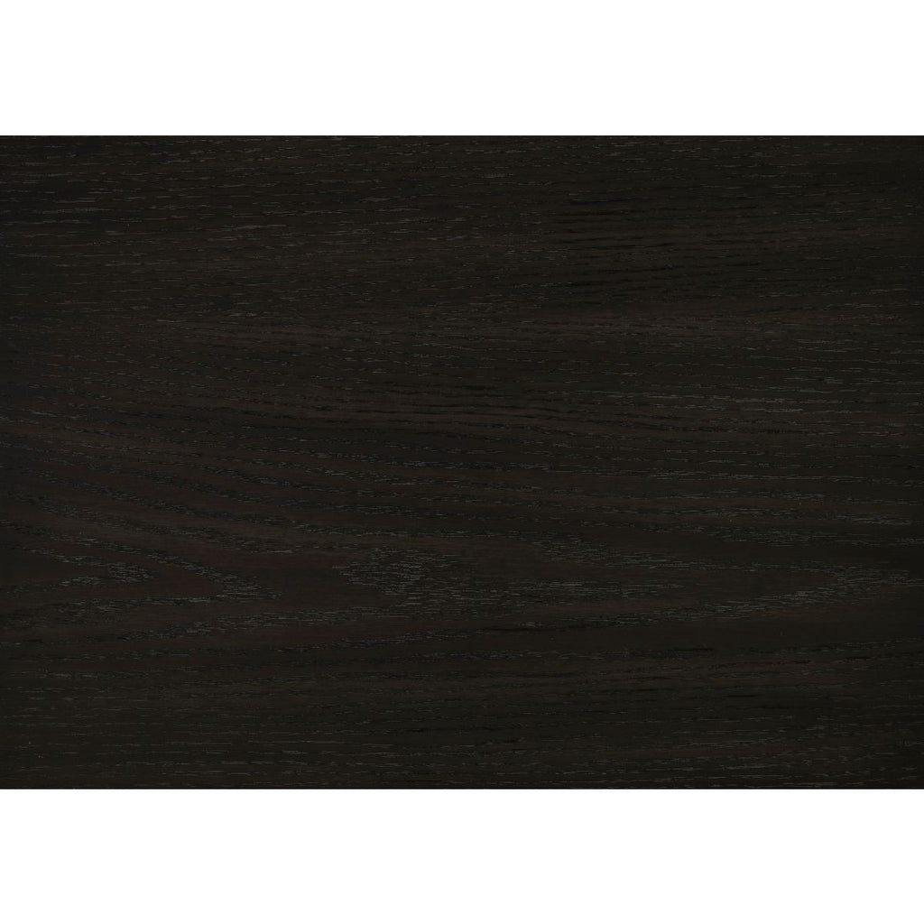 - Ebony finish on textured wood grain surface