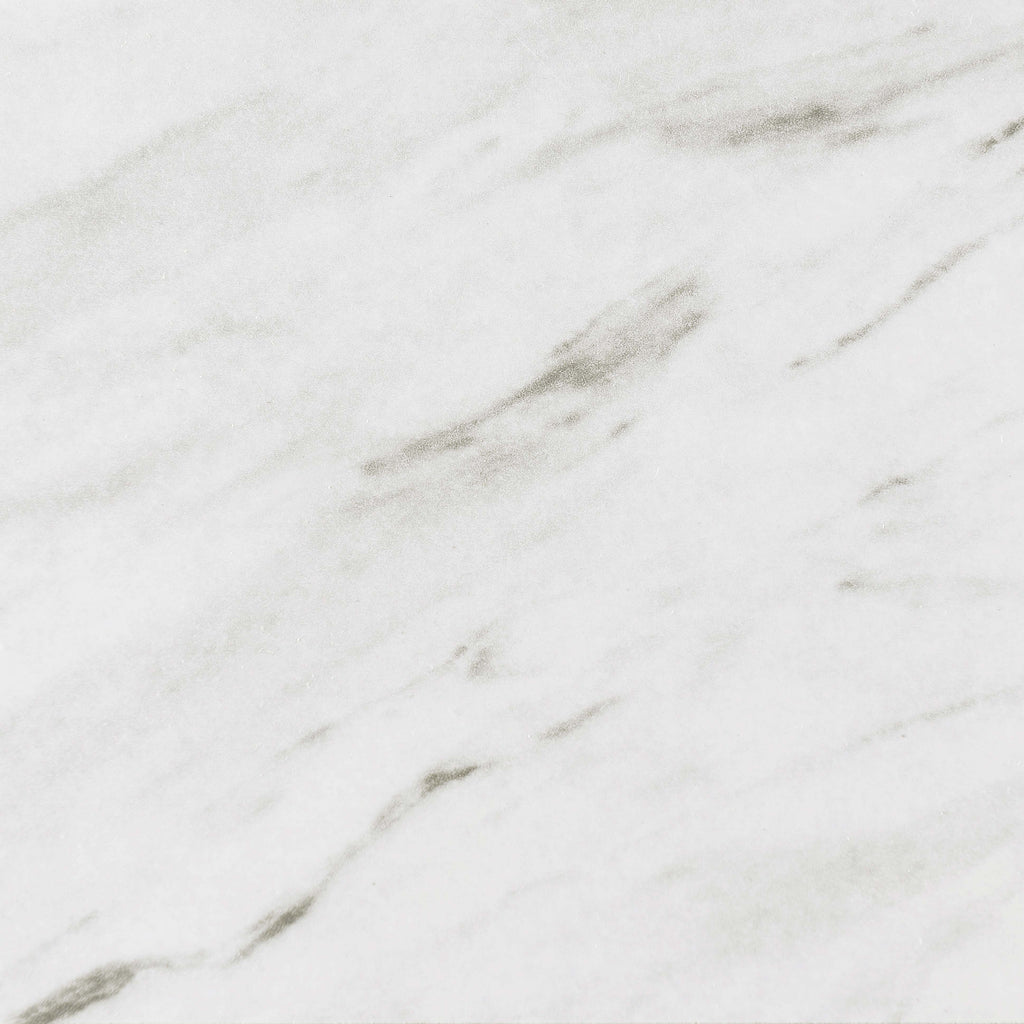 Table has a faux white marble paper with polyurethane sealer and a gunmetal powder coated metal base