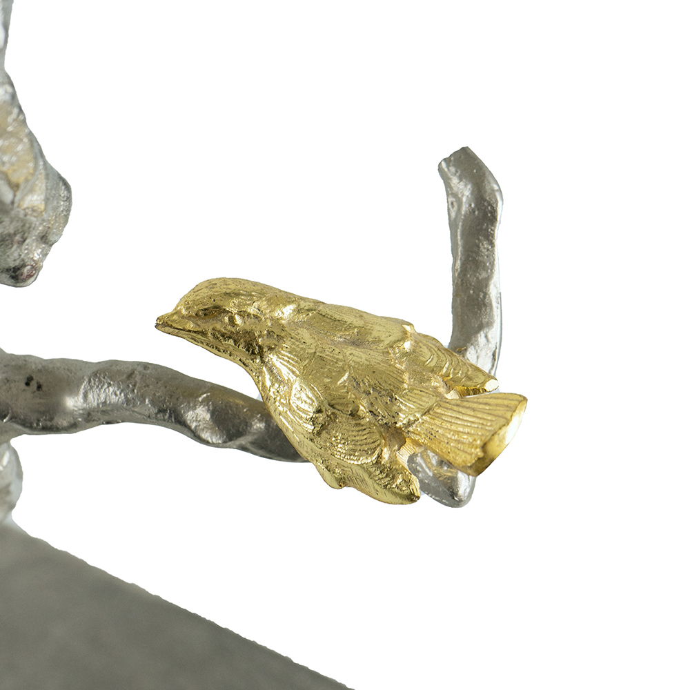 - Nature-Inspired Design: This wall sculpture features silver branches adorned with two golden birds, blending the serene beauty of nature with a contemporary flair.