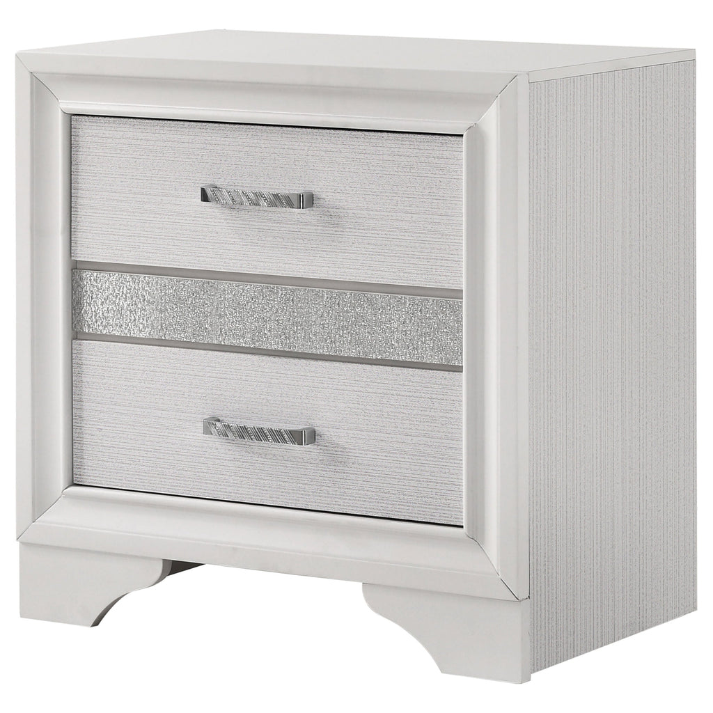 A surprisingly elegant twist embellishes classic charm. Make this nightstand a staple in a transitional bedroom. A shapely base section offers sensual curves that contrast with a linear silhouette. Full extension glides ensure smooth drawer operation. Select from gorgeous finishes.