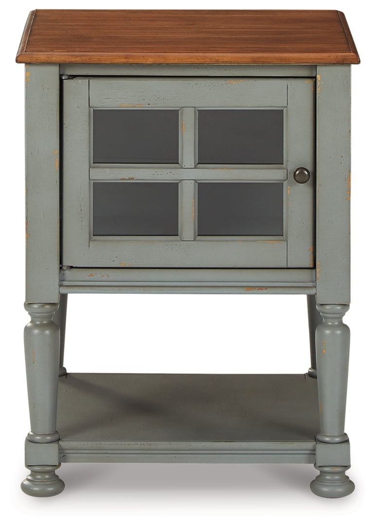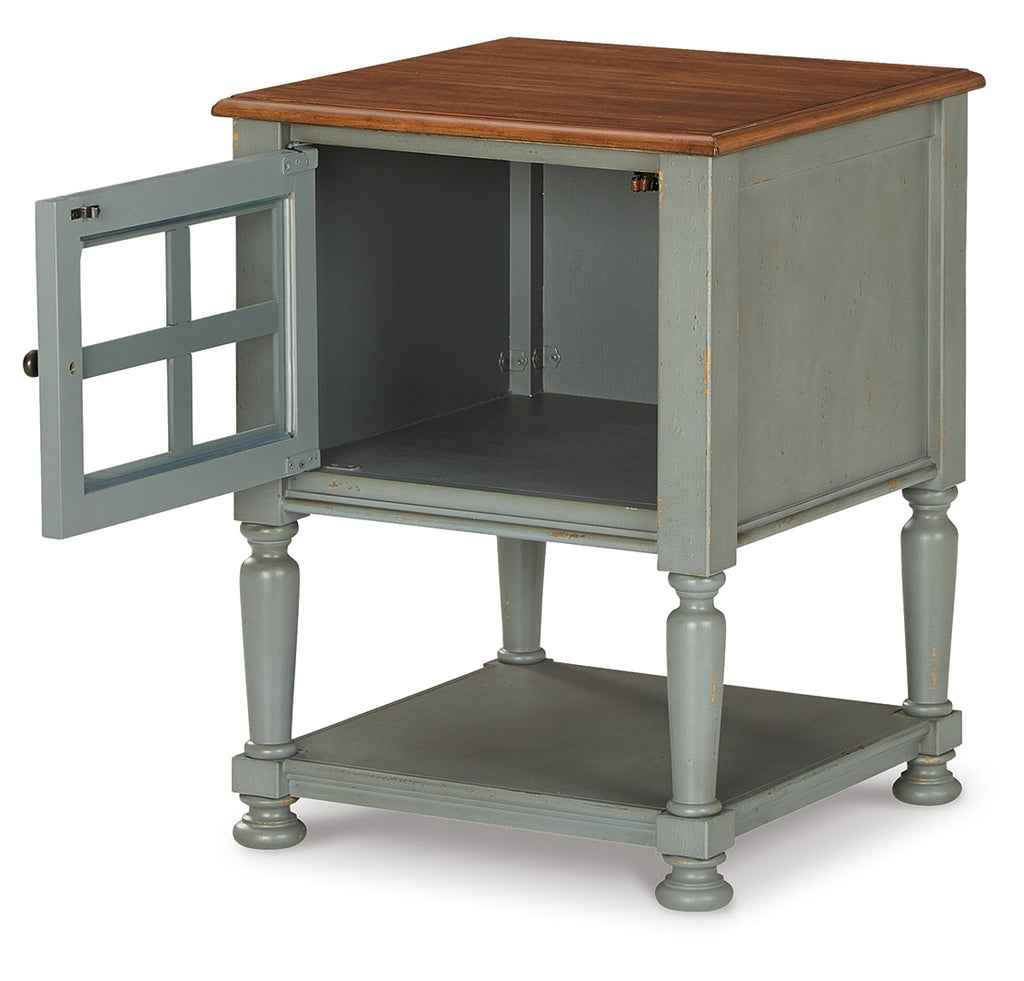 Achieve the vintage casual look you love with this accent cabinet. A stylish storage solution in antiqued gray and brown finishes, this accent cabinet completes any room. A lattice door front and open-air storage shelf create a layered look with endless possibilities.