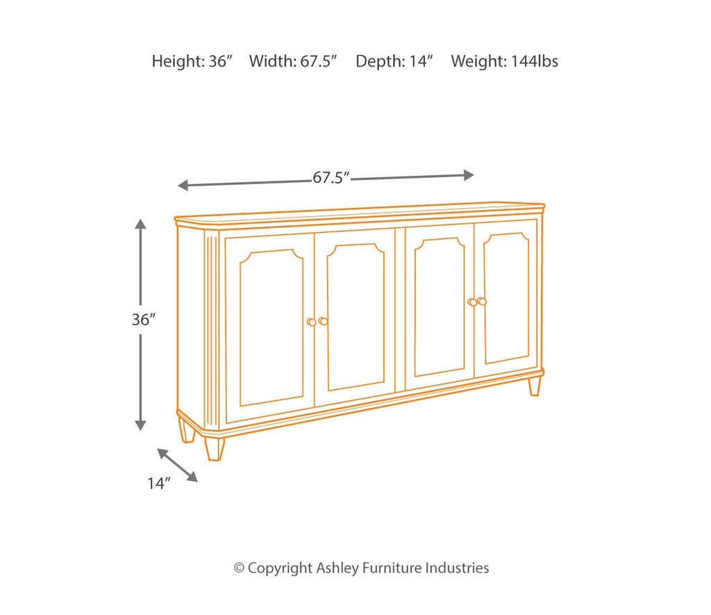 - InchesMetric : 67.5" W x 14" D x 36" H