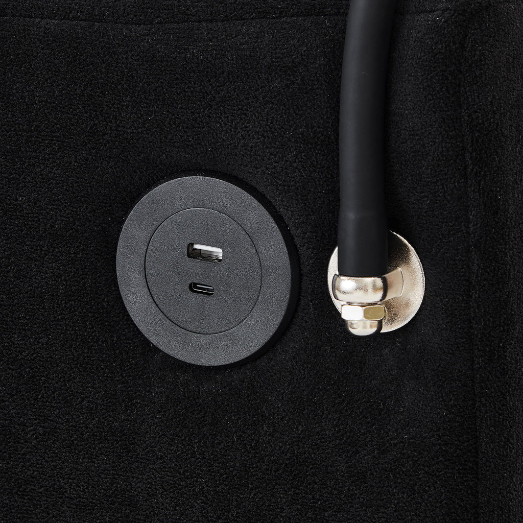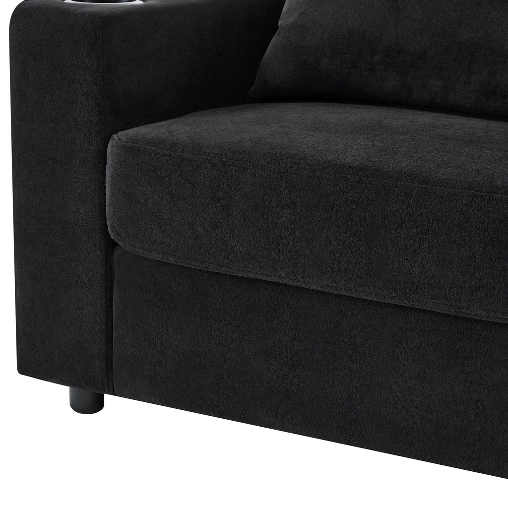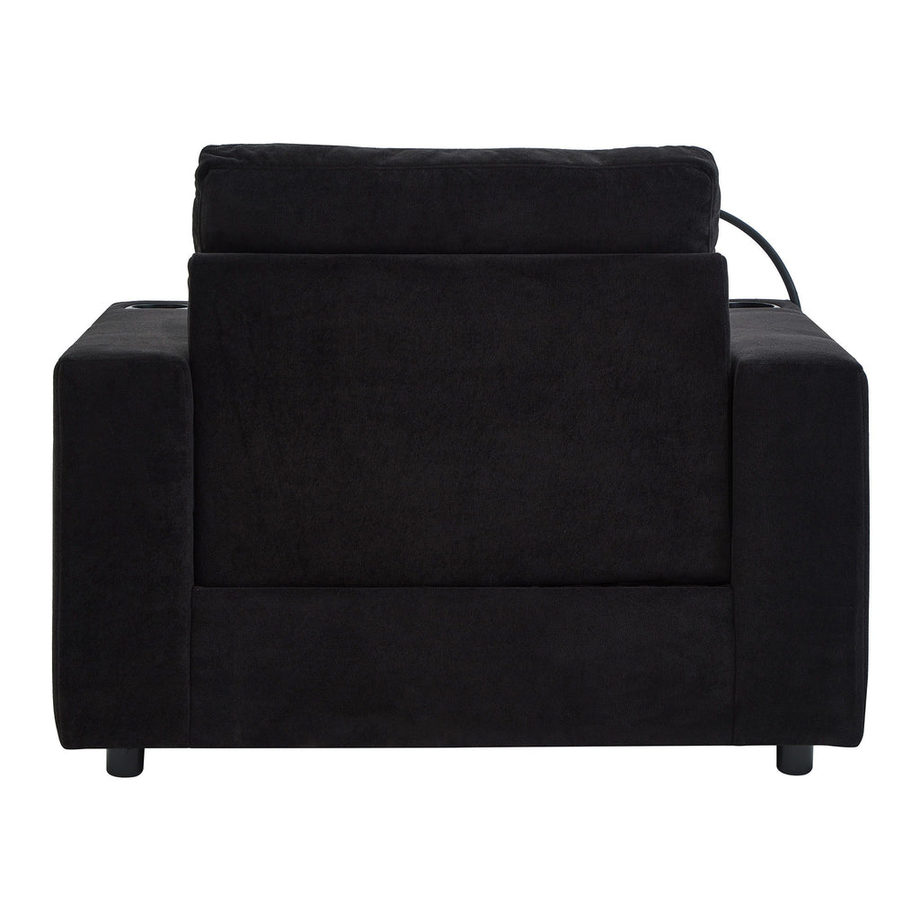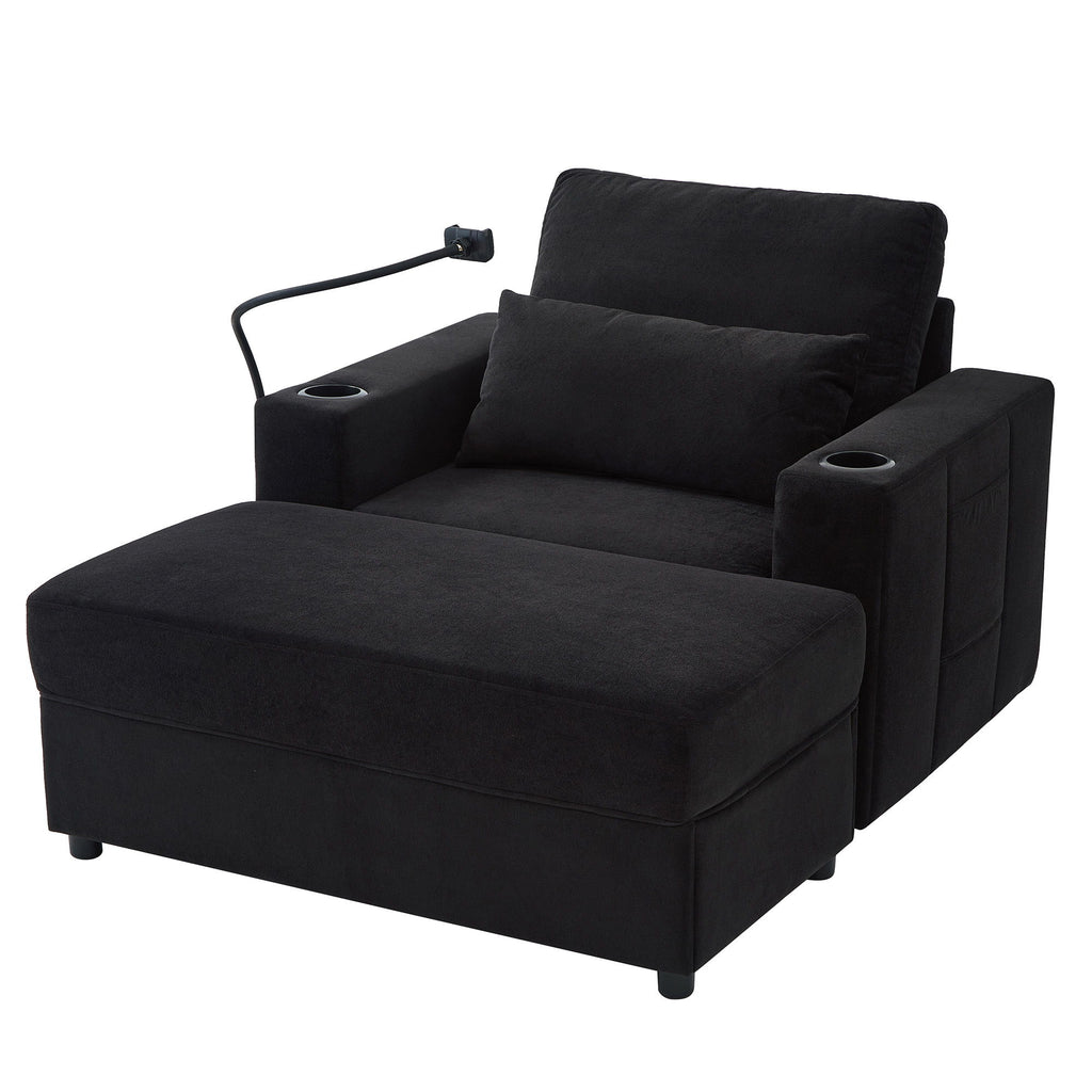 Modern Style Armchair Chaise Lounge Sofa Couch With Movable Storage Ottoman, USB Ports, Cup Holders & Side Pockets Chenille - Black