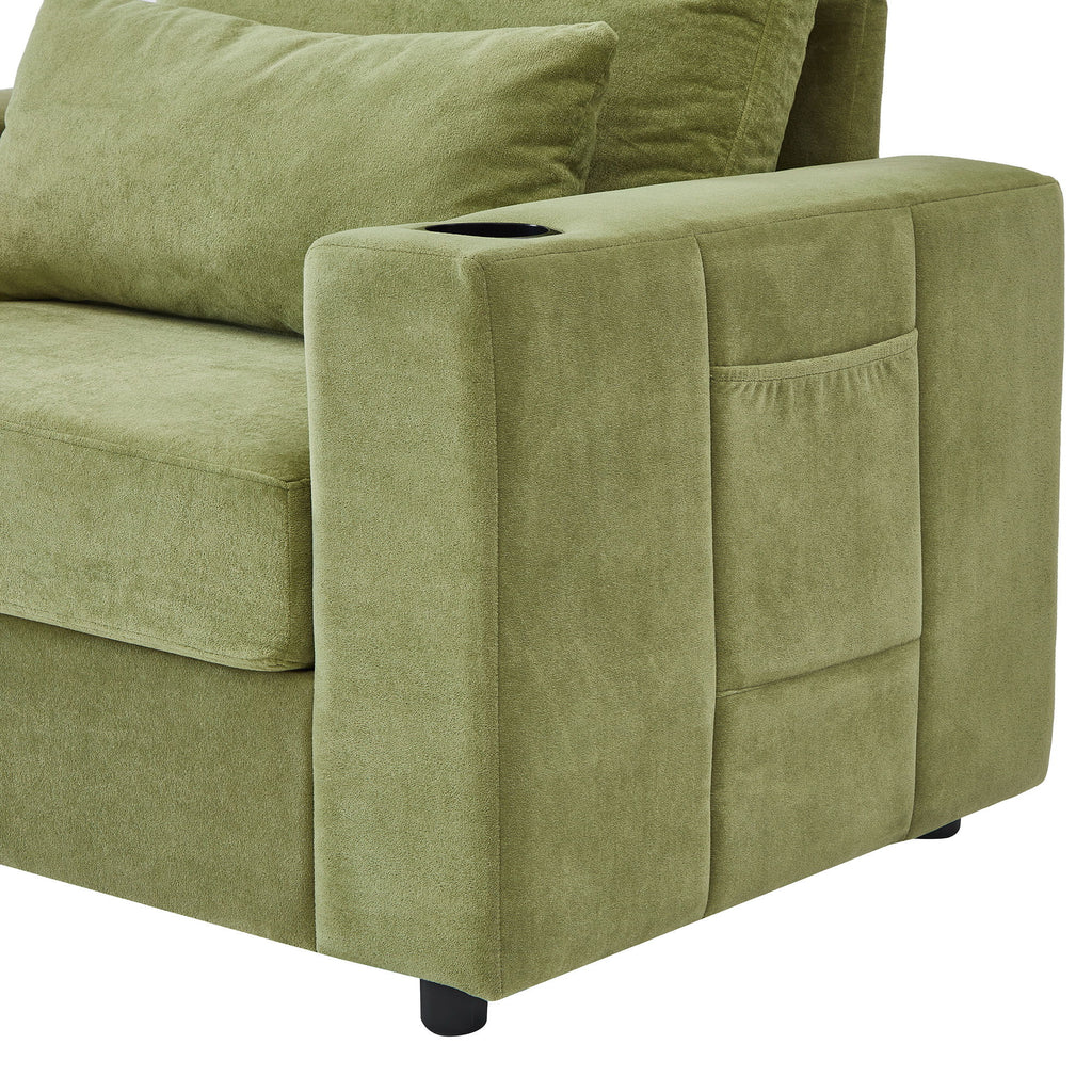 Modern Style Armchair Chaise Lounge Sofa Couch With Movable Storage Ottoman, USB Ports, Cup Holders, Phone Holder, Side Pockets - Green