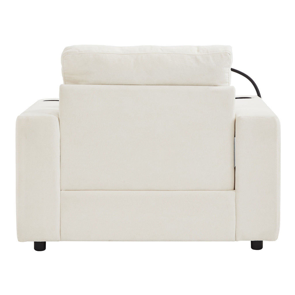 Modern Style Armchair Chaise Lounge Sofa Couch With Movable Storage Ottoman, USB Ports, Cup Holders, Phone Holder Chenille - Beige