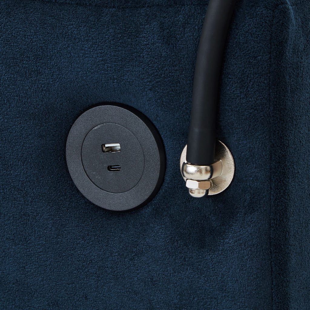 Modern Style Armchair Chaise Lounge Sofa Couch With Movable Storage Ottoman, USB Ports, Cup Holders, Phone Holder, Side Pockets - Blue