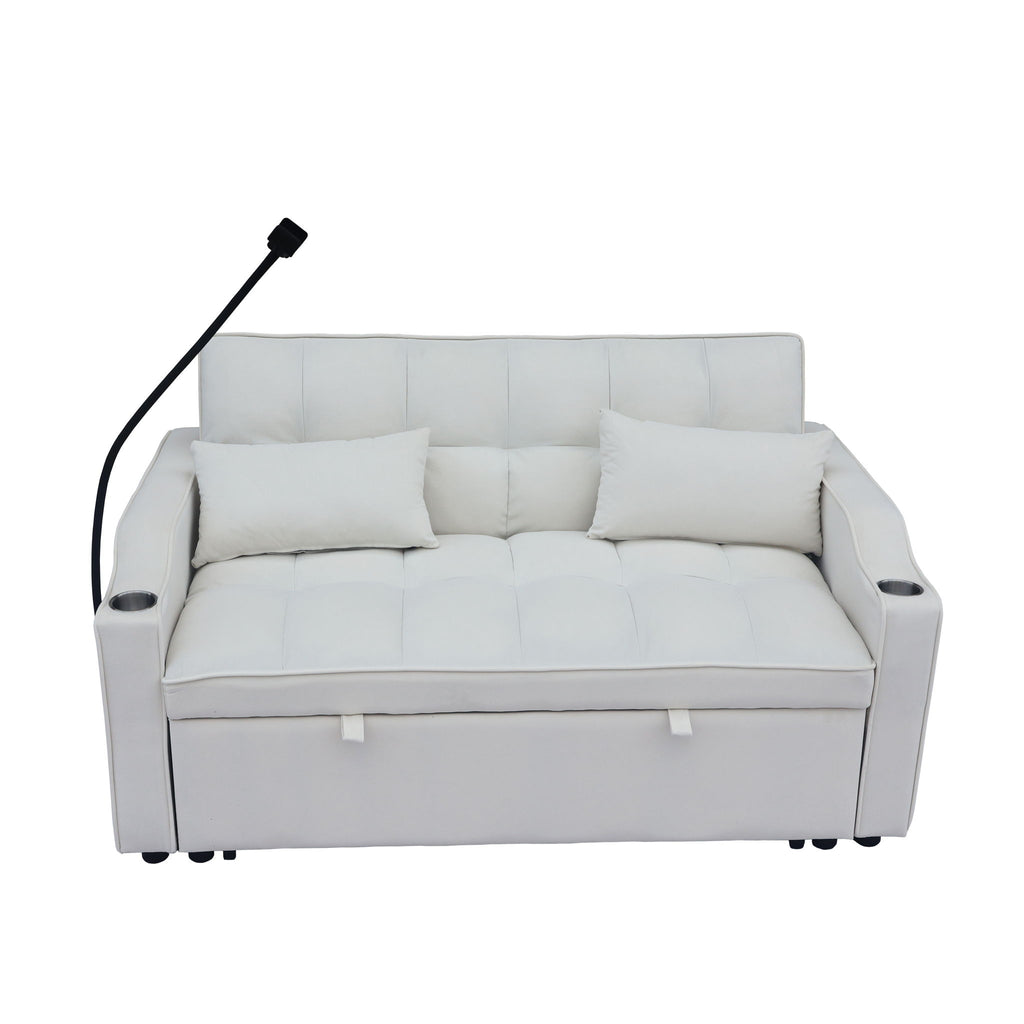 Modern Velvet Loveseat Futon Sofa Couch With Pullout Bed, Adjustable Reclining Backrest, Toss Pillows - Beige