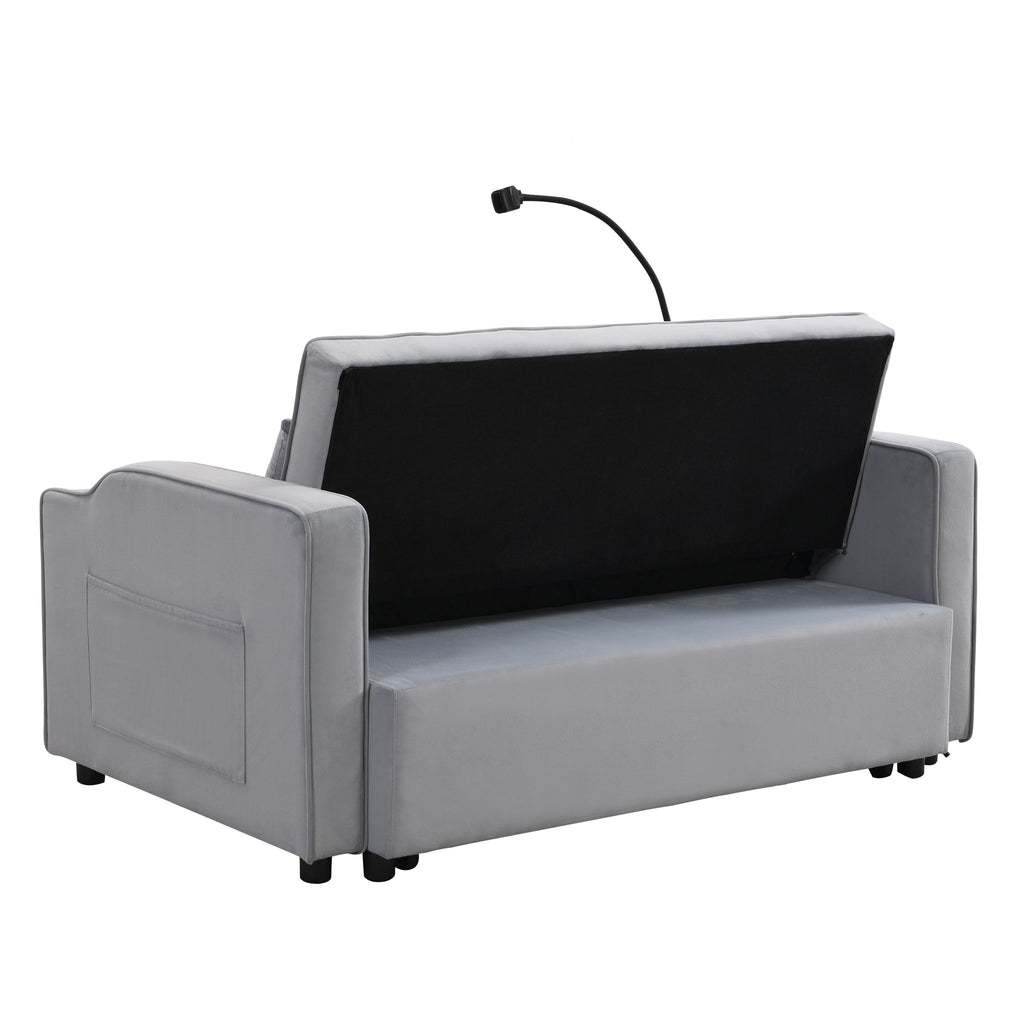 Modern Velvet Loveseat Futon Sofa Couch With Pullout Bed, Adjustable Reclining Backrest, Toss Pillows - Light Gray