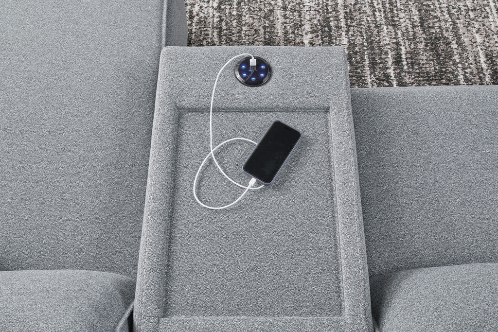 ModMax II - 7-Piece Power Reclining Sectional With LAF Power Chaise And With Audio Console - Salt And Pepper