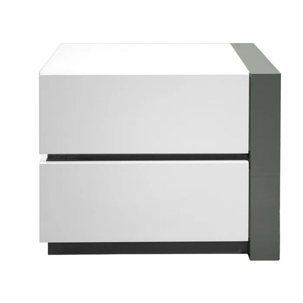 Nightstand Bedside Table With 2 Drawer For Bedroom - White / Silver