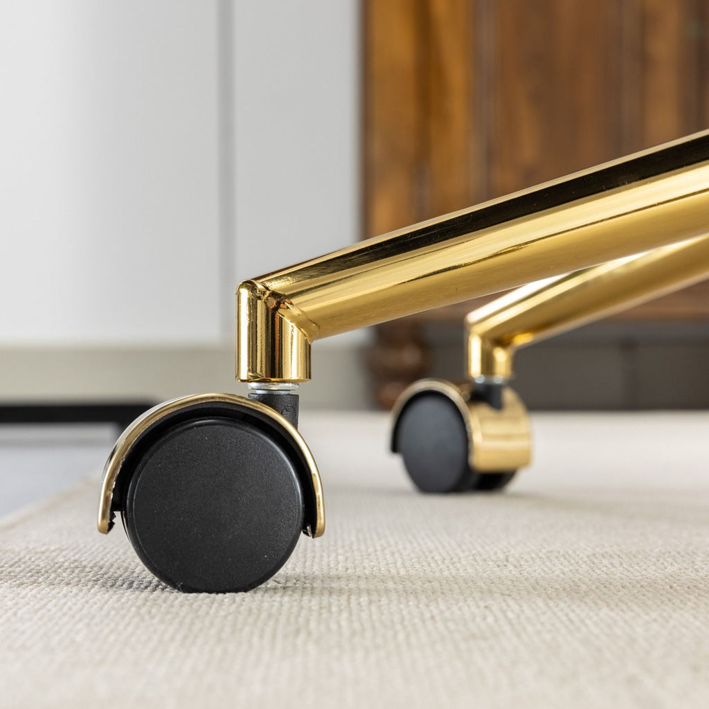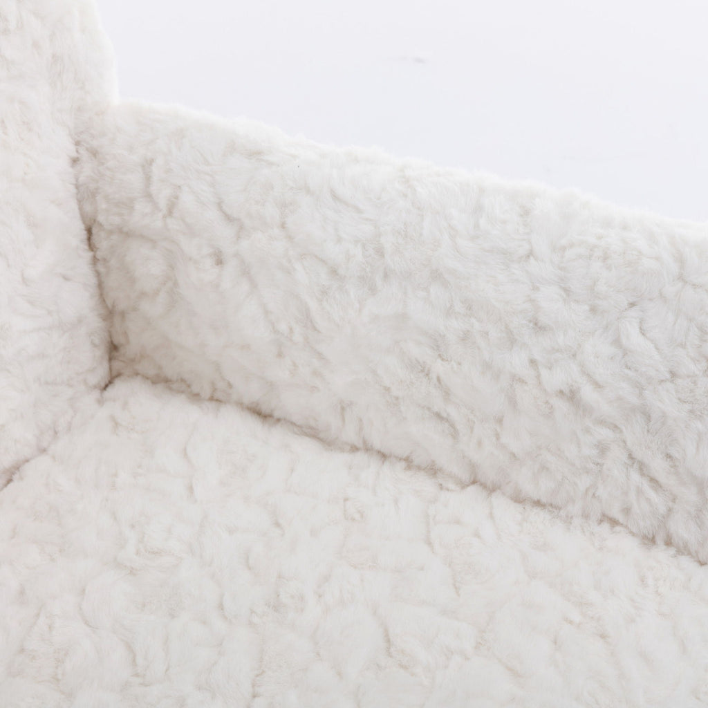 Office Chair, Artificial Rabbit Hair Home Office Chair With Golden Metal Base, Adjustable Desk Chair Swivel Office Chair, Vanity Chair - Beige