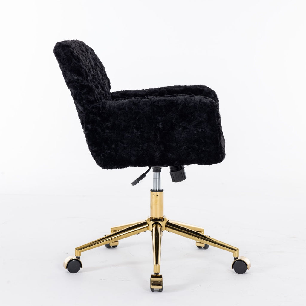 Office Chair, Artificial Rabbit Hair Home Office Chair With Golden Metal Base, Adjustable Desk Chair Swivel Office Chair, Vanity Chair - Black