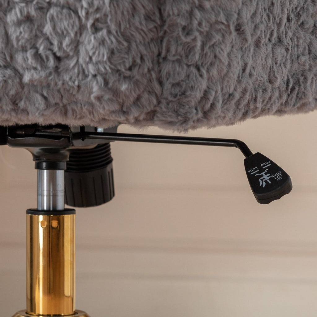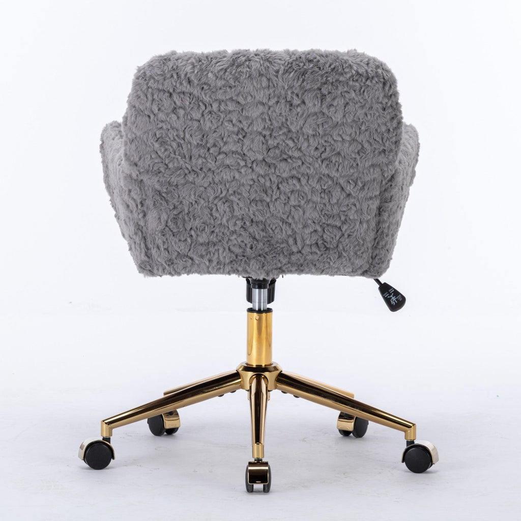 Office Chair, Artificial Rabbit Hair Home Office Chair With Golden Metal Base, Adjustable Desk Chair Swivel Office Chair, Vanity Chair - Gray