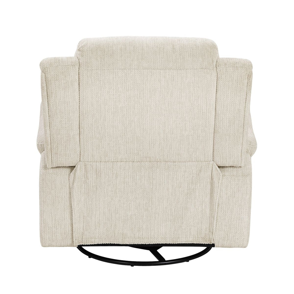 Indulge in ultimate relaxation with the gliding swivel recliner, a perfect addition to your nursery, living room, or any space where comfort is key. Upholstered in a soft and durable textured microfiber, this recliner invites you to unwind with its gentle gliding motion and smooth 360-degree swivel, allowing you to easily soothe a baby or engage in any room. The supportive foam padding over pocket coils ensures exceptional seating comfort, while the convenient pull-handle reclining motion lets you effortlessly find your ideal lounging position. Built with a sturdy plywood frame featuring a metal-reinforced seat and a 300lbs weight capacity, this recliner is designed for lasting durability and comfort. The attached back and seat cushions maintain a neat appearance, making this gliding swivel recliner a haven for relaxation and a stylish addition to your home.