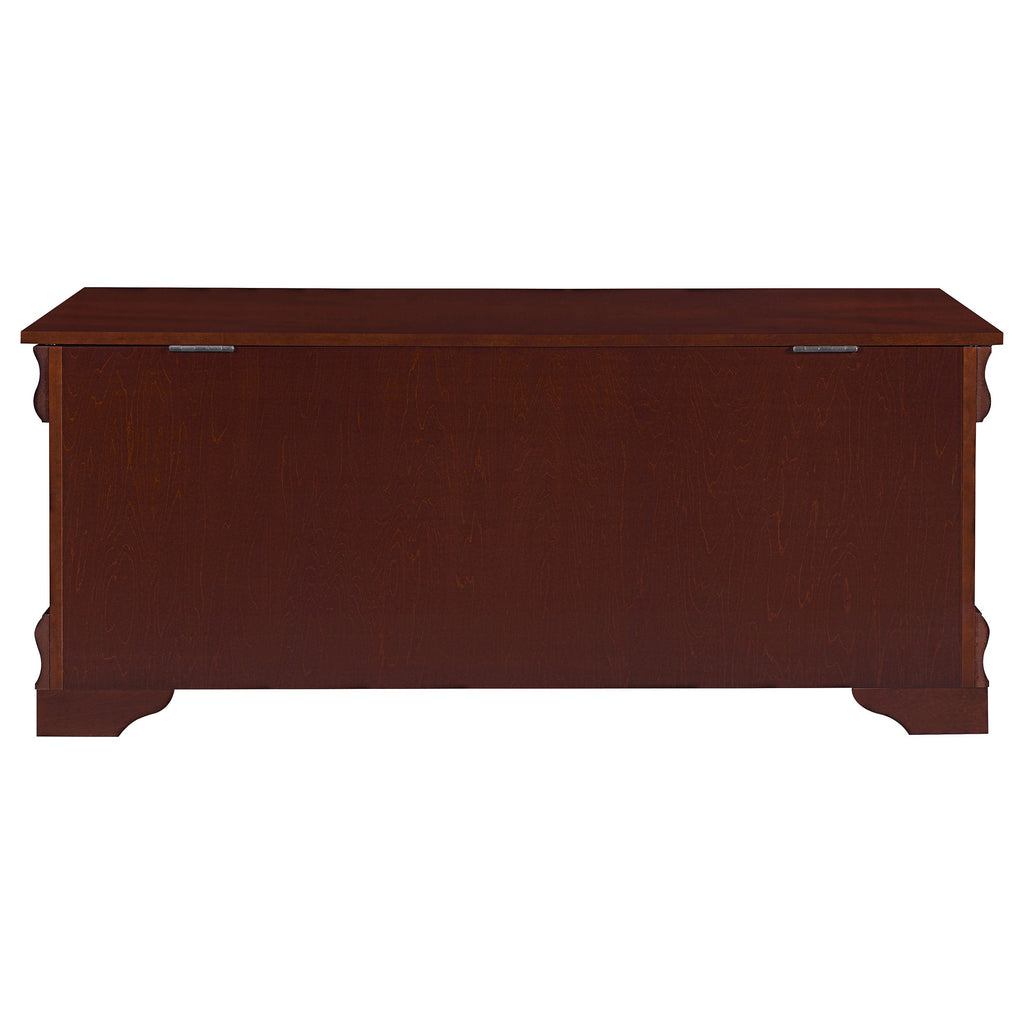 This cedar chest brings timeless elegance and storage in one, featuring a warm brown finish and traditional base molding. The flip-open top is supported by a child safety hinge for added security. Built from rubberwood, engineered wood, and basswood veneer, it offers durability and a refined profile. Inside, the fully cedar-lined interior naturally protects contents by repelling pests, absorbing moisture, and preserving freshness—ideal for linens, keepsakes, or seasonal items.