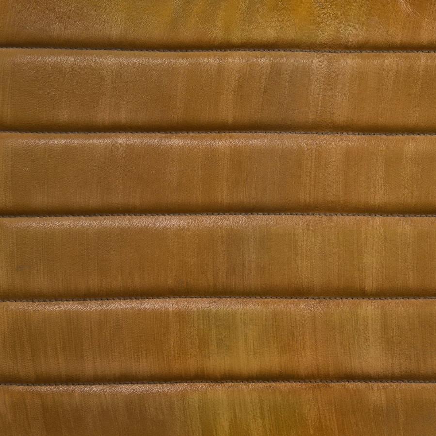 Add a retro-inspired touch to a space with this industrial-inspired counter height stool. wrapped in a leather upholstery across the contoured backrest and seat, this stool offers ultimate comfort and stability. each leather piece includes hand-dyed details, offering a lovely gradation and warmth and features channel tufting with welt trim details. along the back is an iron x-shape back for extra support and a stylish accent. the comfy leather seat also rests on a black iron base designed with flared tapered legs that push the vintage vibes.