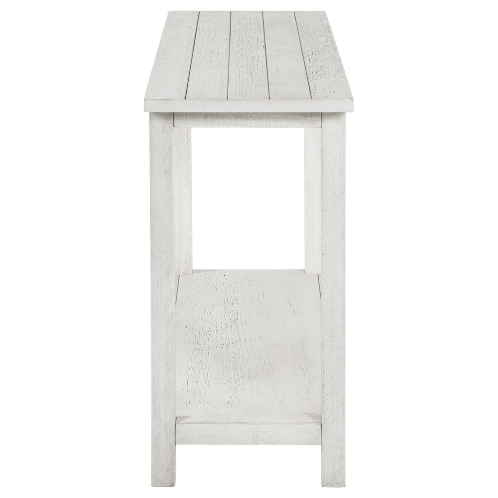 Crafted to complement both entryways and living rooms, this console table showcases a rustic aesthetic and versatile appeal. Fashioned from pine wood and reinforced with engineered wood, its open lower shelf provides ample space for baskets or decorative accents. The slim profile allows easy placement behind a sofa or along a hallway, making it a stylish choice for farmhouse or casual interiors. Enhance your space while keeping essentials close at hand.
