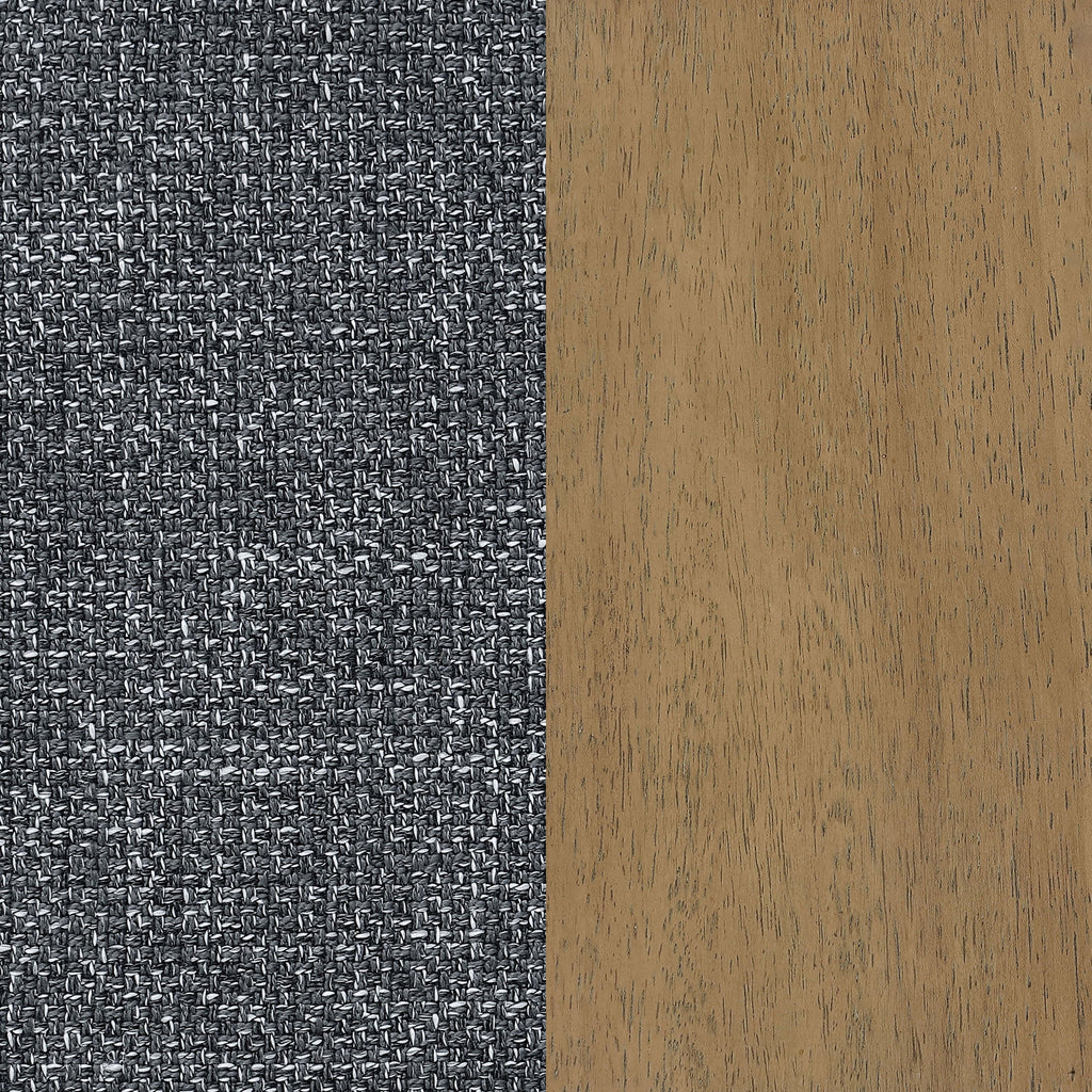 Add style to your space with this magnificent Mid-Century Modern sectional sofa. This low profile 2-piece sectional is exceptionally upholstered in a textured cool grey woven fabric accented with contrast blanket stitching in beige. Equally appealing is the beige platform base with tall tapered legs. On one end, it features a wide track armrest, while the other is open-ended in a chaise-like design. Two included throw pillows give this sectional added coziness.