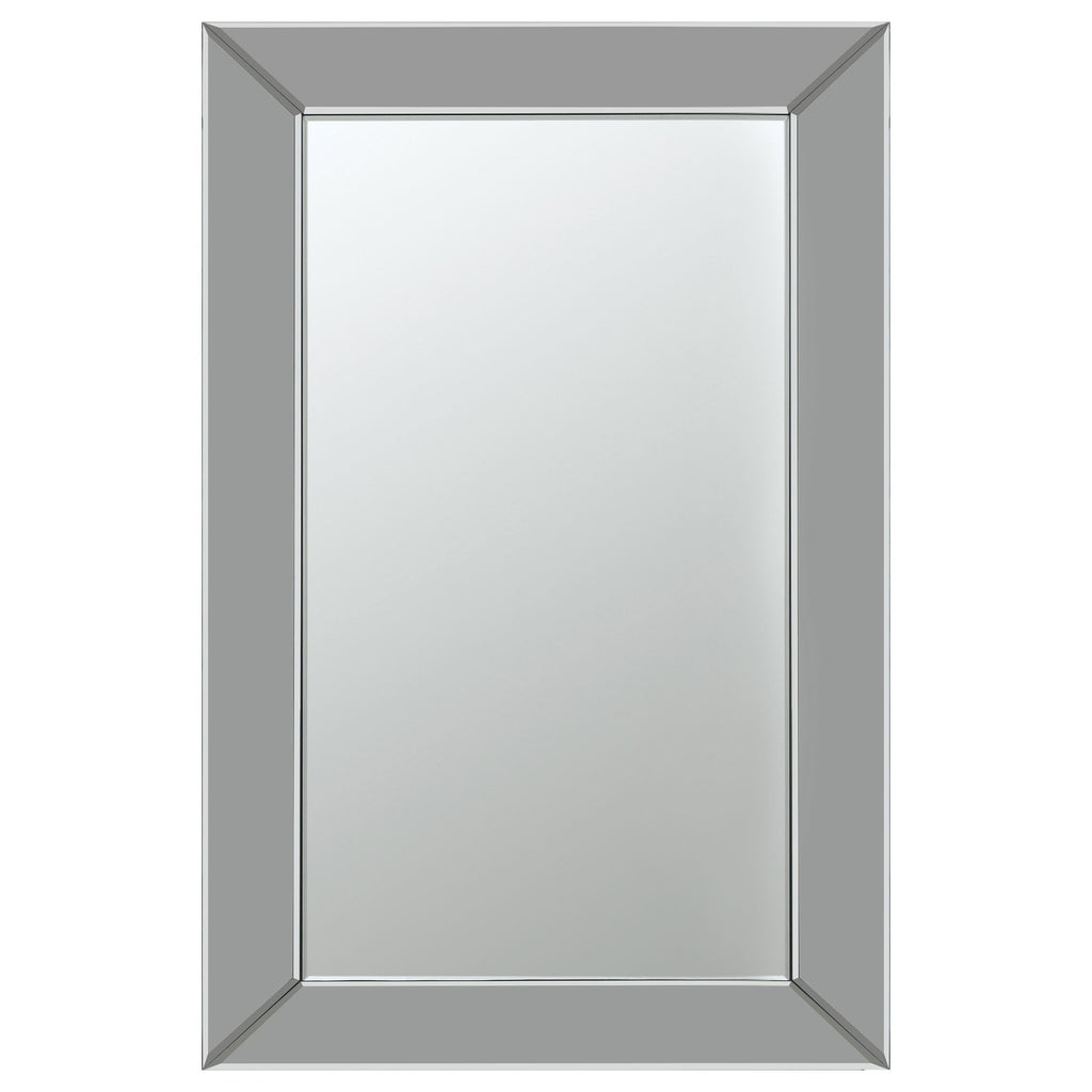 This rectangular wall mirror features an all-mirror construction with a beveled frame that adds depth and visual interest. Designed for flexibility, it can be hung either vertically or horizontally to suit your wall space and layout. The clean edges and reflective surface make it ideal for brightening bedrooms, entryways, or vanities. With its sleek profile, this mirror complements both contemporary and transitional interiors. Mounting hardware not included.