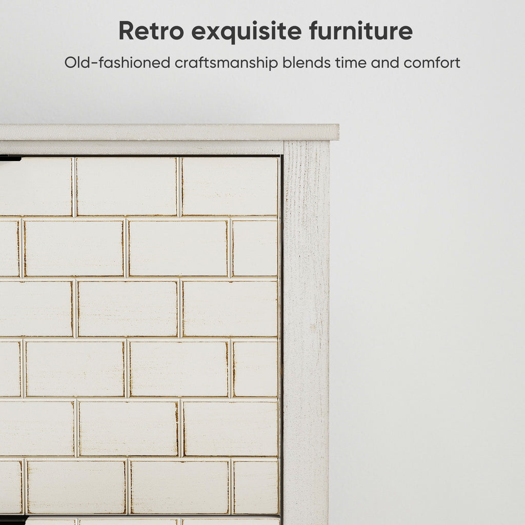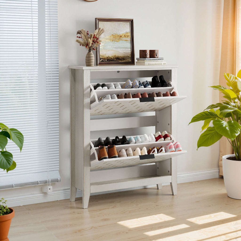 Retro Shoe Storage Cabinet, Mid Century Vintage Freestanding With 2 Flip Drawers, Suitable For Entryway - Retro White / White / Vintage