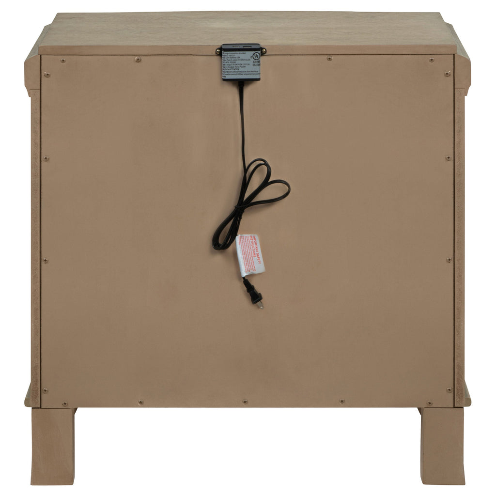 This French Provincial-inspired nightstand blends classic elegance with modern convenience. Crafted from solid poplar, engineered wood, and mango veneer, it showcases a washed mango finish that highlights the natural wood grain. Two spacious drawers provide ample bedside storage, accented with sleek metal handles. Designed for today’s needs, it offers built-in charging capabilities, ensuring effortless functionality while maintaining its timeless charm.