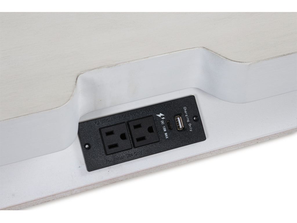 Taking a laid-back approach to casual traditional design, this artfully crafted nightstand combines classic elements with a clean modern approach. Its rubbed antiqued finish exudes a comfy, timeless appeal that's sure to carry you away to a dreamy time and place. The simple round metal knob and ring pulls on the nightstand's spacious drawers make just the right statement, while an integrated power outlet and USB charging keep your devices powered up overnight.