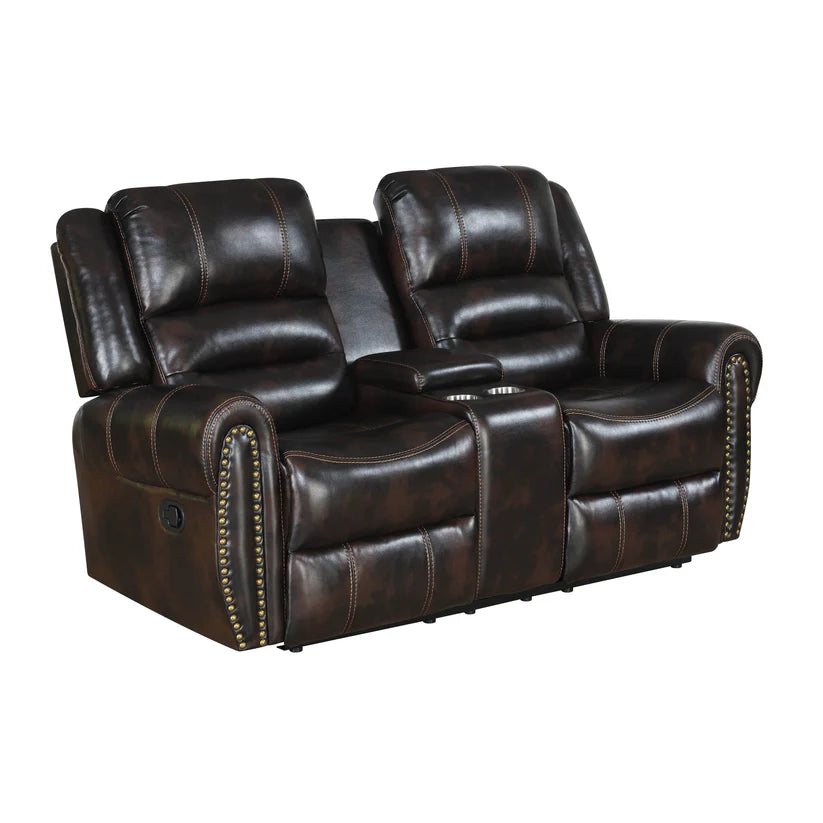 Loveseat Console: Integrated storage console with cup holders, perfect for keeping the lounge area organized.