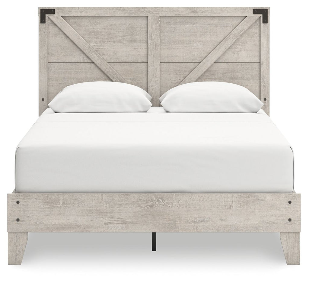 Shawburn - 3 Pc. - Dresser, Queen Platform Bed With Crossbuck Panel Headboard - Gray