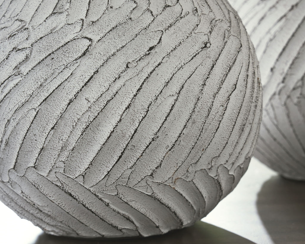 Dreaming of style inspired by serene living? Embody the relaxed elegance of a timeless retreat with this vase. The round silhouette showcases a graceful linear pattern in a distressed finish, creating a gentle, wave-like texture. It's chic as a standalone piece or grouped with other coastal-casual accents.