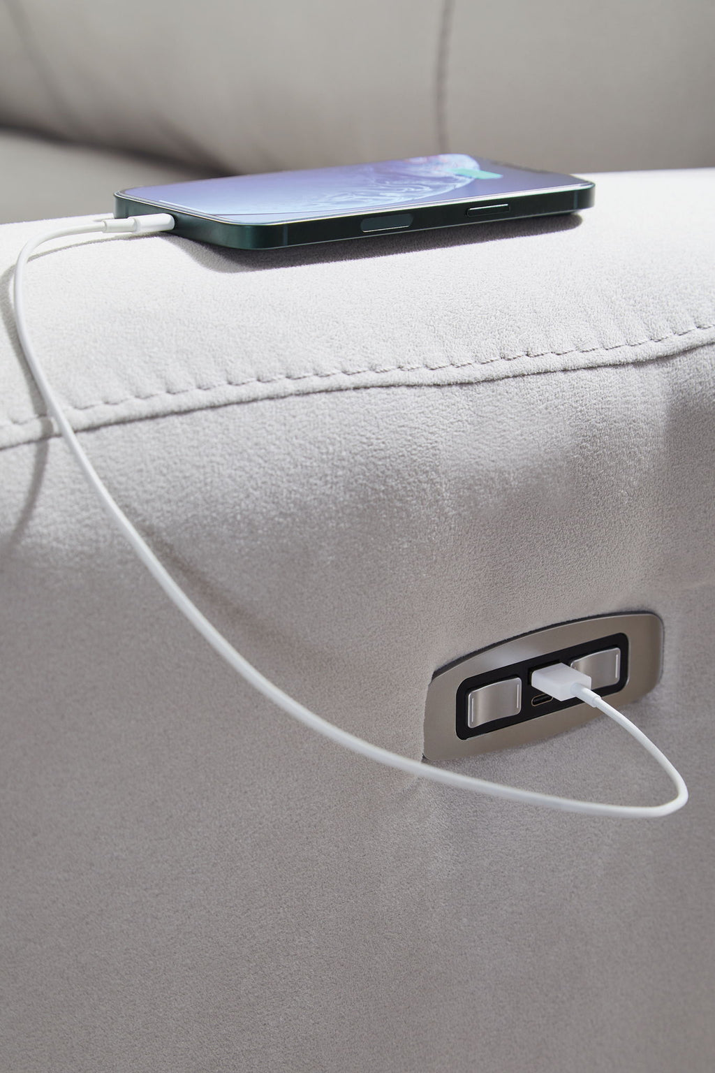 Smart, clean and ultra modern, this power recliner is utterly in vogue. You'll love its indulgent cushions and contemporary bustle back styling. The sumptuous fabric, accentuated with contrasting welting, easily blends with your decor. And with reclining at the press of a button, this piece proves chic design and superb comfort go hand in hand.