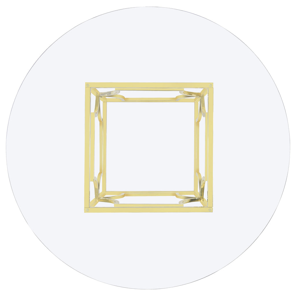 This round dining table creates a refined focal point with its clear tempered glass top and artful geometric base. The sculptural metal frame features intersecting curves and angles, electroplated in a high-shine finish for a bold, contemporary effect. Its open design keeps the space light, while the tempered glass adds a durable, easy-care surface for everyday use or entertaining.