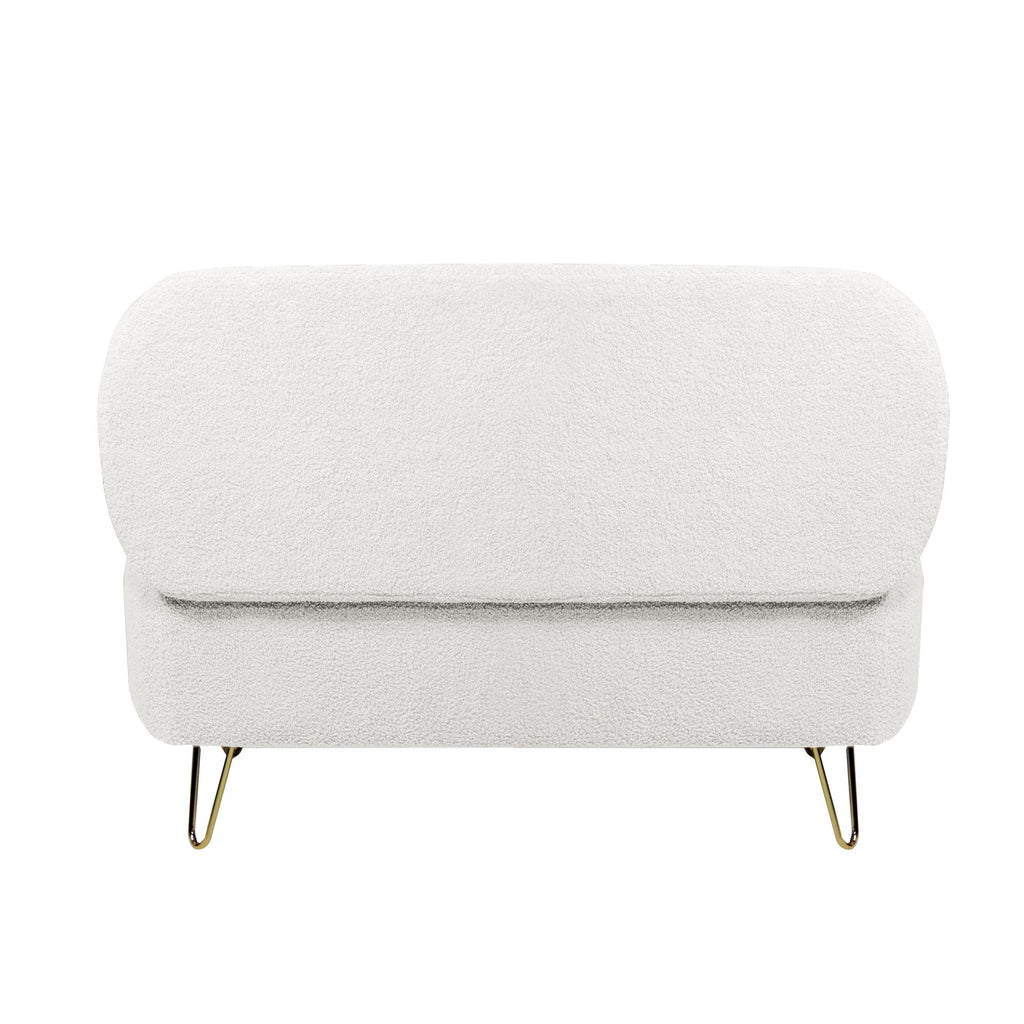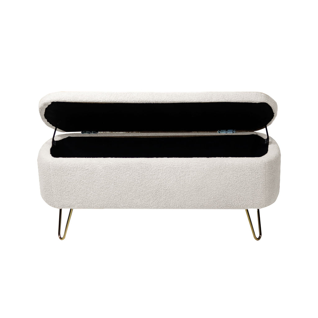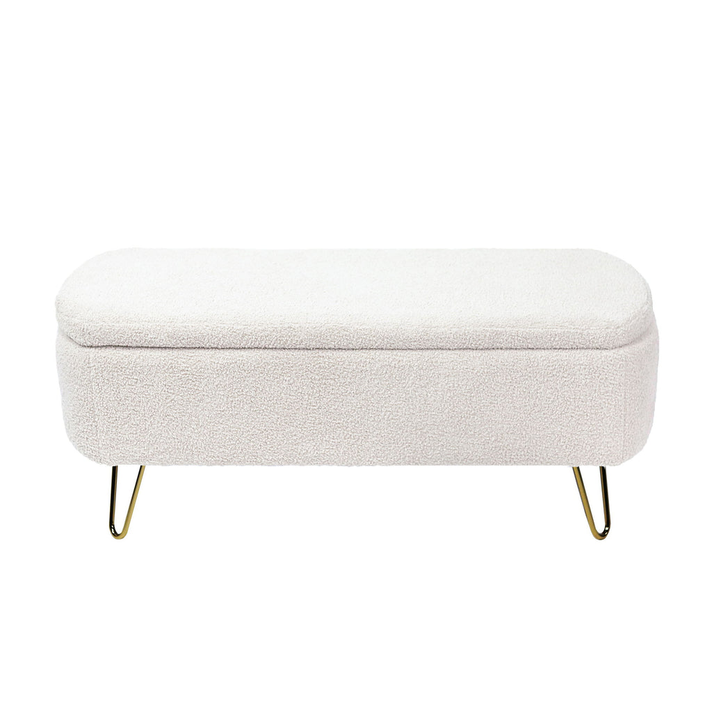 Storage Ottoman Bench For End Of Bed Gold Legs, Modern Ivory White Faux Fur Entryway Bench Upholstered Padded With Storage For Living Room Bedroom - Ivory
