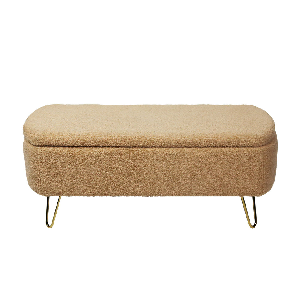 Storage Ottoman Bench For End Of Bed Gold Legs, Modern Camel Faux Fur Entryway Bench Upholstered Padded With Storage For Living Room Bedroom - Camel