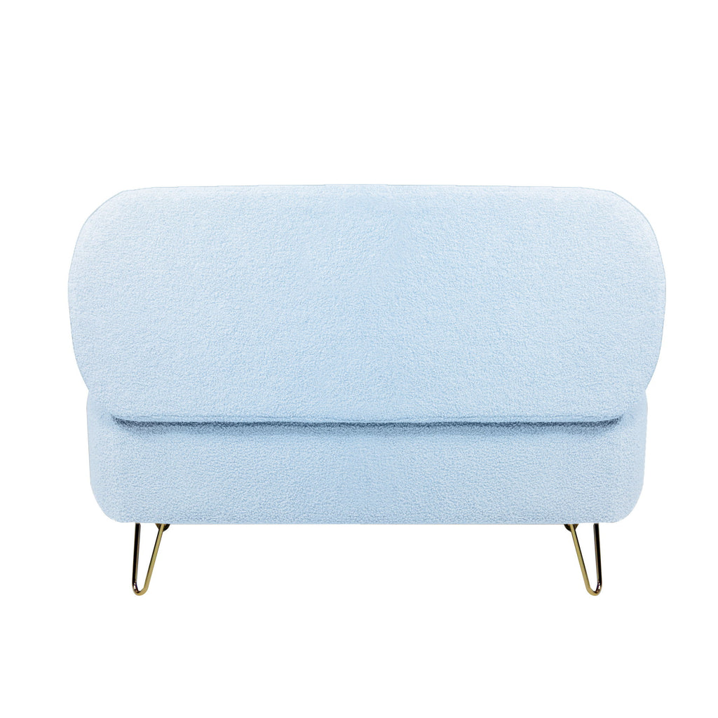 Storage Ottoman Bench For End Of Bed Gold Legs, Modern Gray Faux Fur Entryway Bench Upholstered Padded With Storage For Living Room Bedroom - Blue