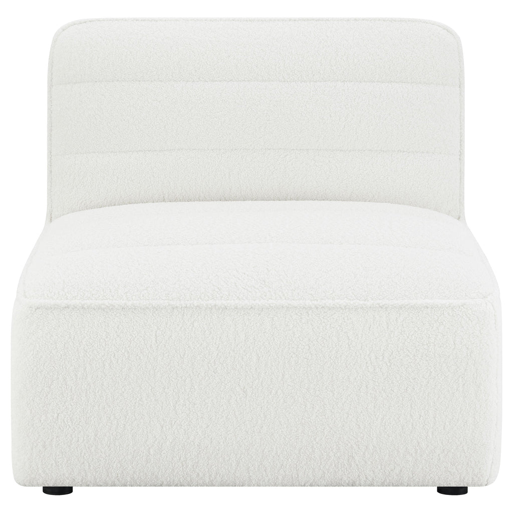 This modular armless chair offers the perfect combination of comfort and versatility. The plush, deep cushioning ensures long-lasting support while the channel-tufted backrest adds a touch of refinement to any space. Whether you use it as a standalone piece or as part of a larger sectional, its modern design complements a wide variety of interiors. Designed for flexibility, this chair can be seamlessly integrated into various room layouts, making it a practical addition to any home.