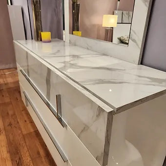 The Sunset III Collection is the ultimate expression of modern Italian minimalism. Draped in a flawless, striking High Gloss White finish, this suite is designed to create a luminous and serene bedroom sanctuary. Every interaction with the furniture feels premium, thanks to the soft-closing drawers that ensure silent operation. Handcrafted in Italy, Sunset III offers a perfect balance of contemporary sharp lines and timeless European elegance, making it a standout choice for 2026 interiors.