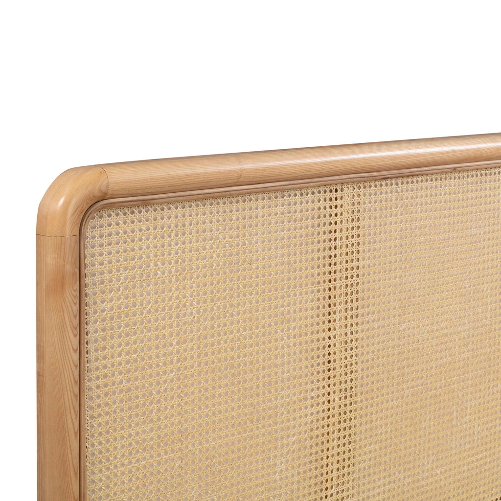 Dream on in comfort and style with the Kavali bed. Masterfully crafted from Ash wood and cane and complemented with soft velvet, this retro-inspired bed is available in mutiple sizes and colors.