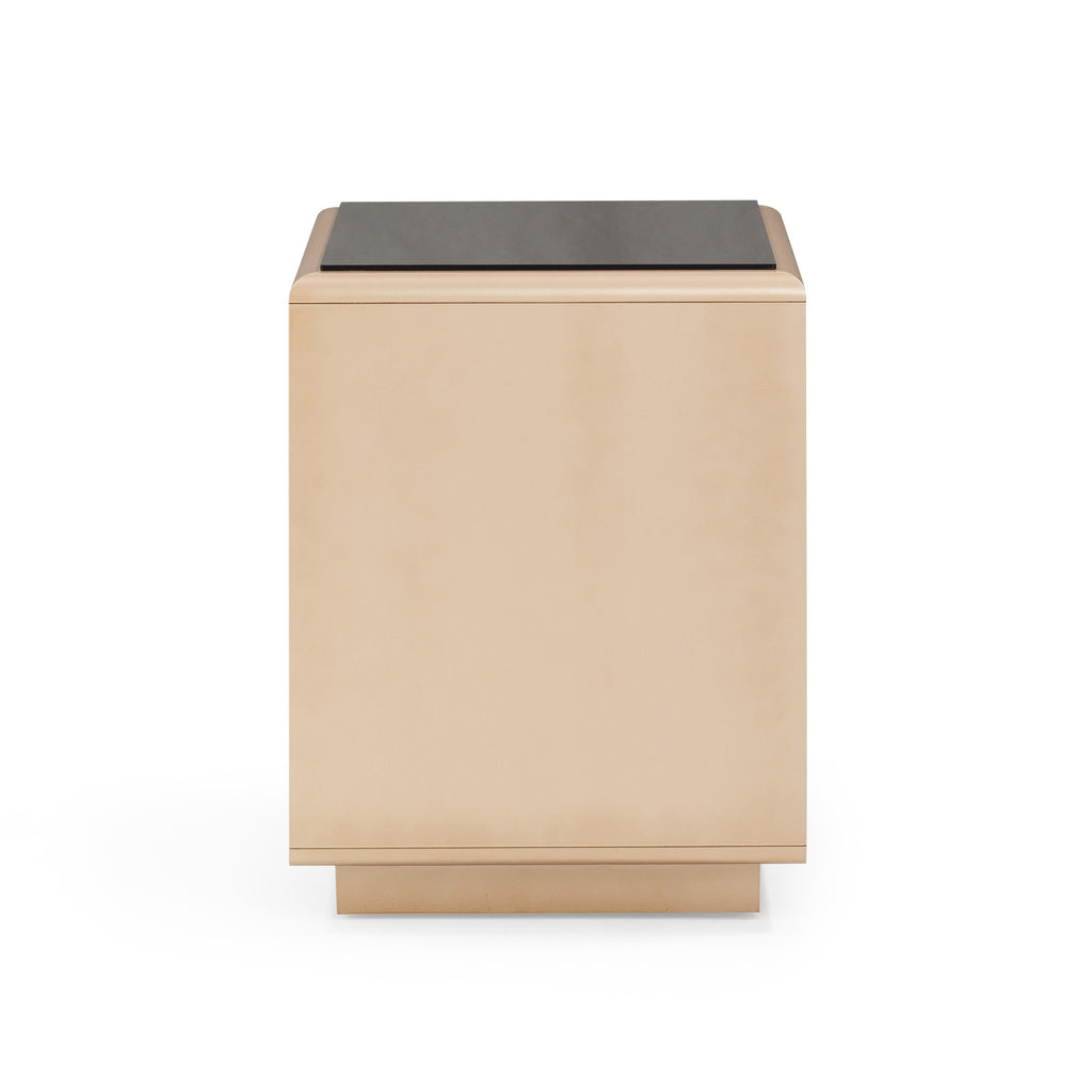 We tapped into the Mocha Mousse trend with the Martha Taupe Mirrored Nightstand. This Art Deco-inspired piece features a sleek metallic taupe finish and a beveled glass surface that adds a touch of glam and easy-to-clean functionality.