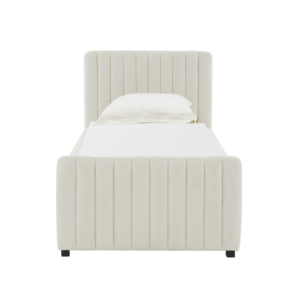 We can't guarantee your dreams will come true, but at least we can help you dream in style. The Angela trundle bed features glam design, channel tufting, and sumptuous velvet upholstery that's available in multiple color options. This trundle is a stylish and smart solution for your space!