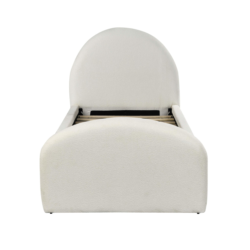 Transform your space with the Moon Twin Bed, a stunning piece that embodies the Art Deco style. Available as a classic twin or a versatile trundle bed, it seamlessly blends functionality with charm. Available in a cream boucle fabric or a rose upcycled chenille, each adding a touch of warmth and style to your bedroom. Whether hosting overnight guests or creating a cozy retreat for yourself, the Moon Twin Bed invites sweet dreams and delightful memories, making every night a little more magical.