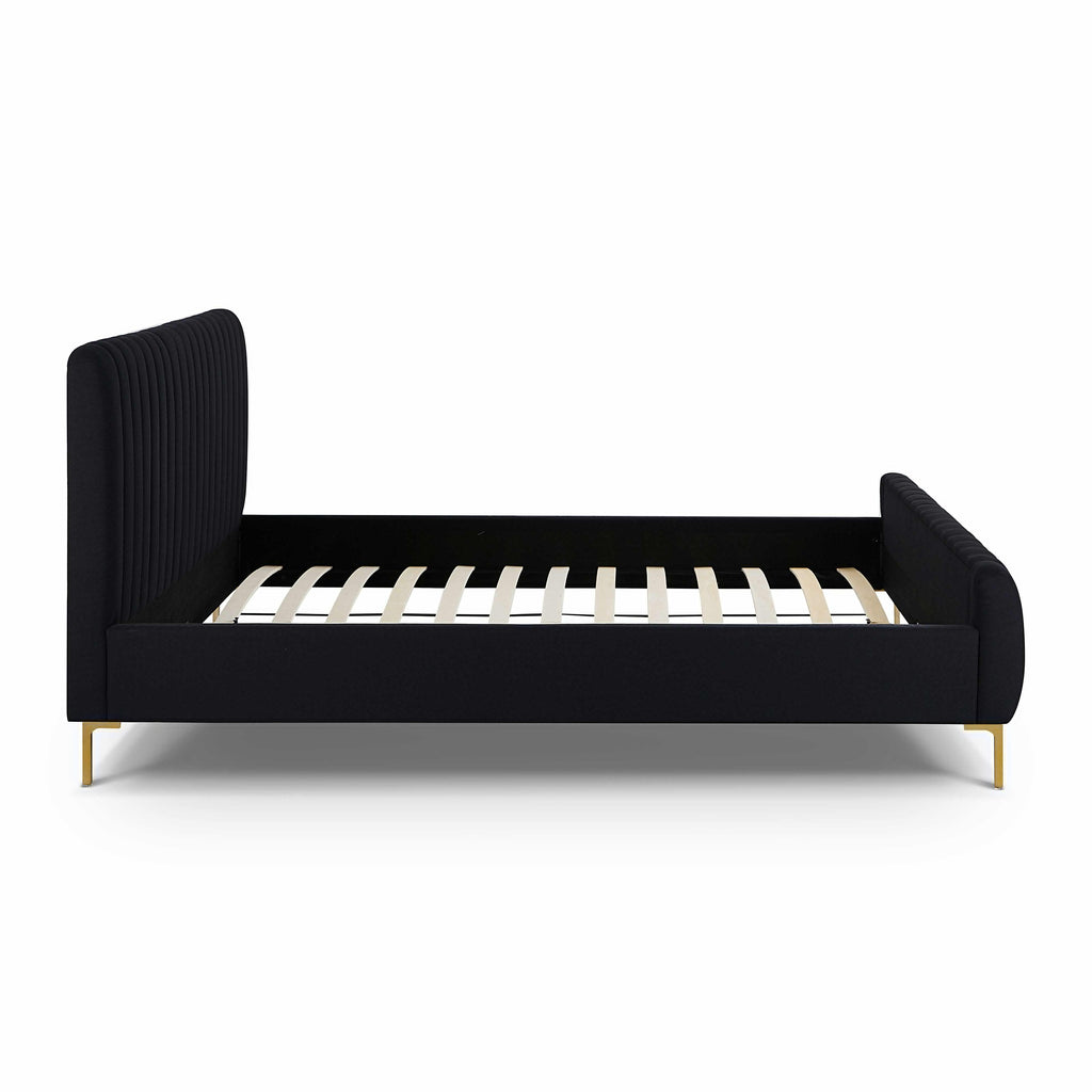 We can't guarantee your dreams will come true, but at least we can help you dream in style. The Angela bed features glam design, channel tufting and gold legs that pop against the sumptuous upholstery. Available in queen or king and multiple color and fabric options.