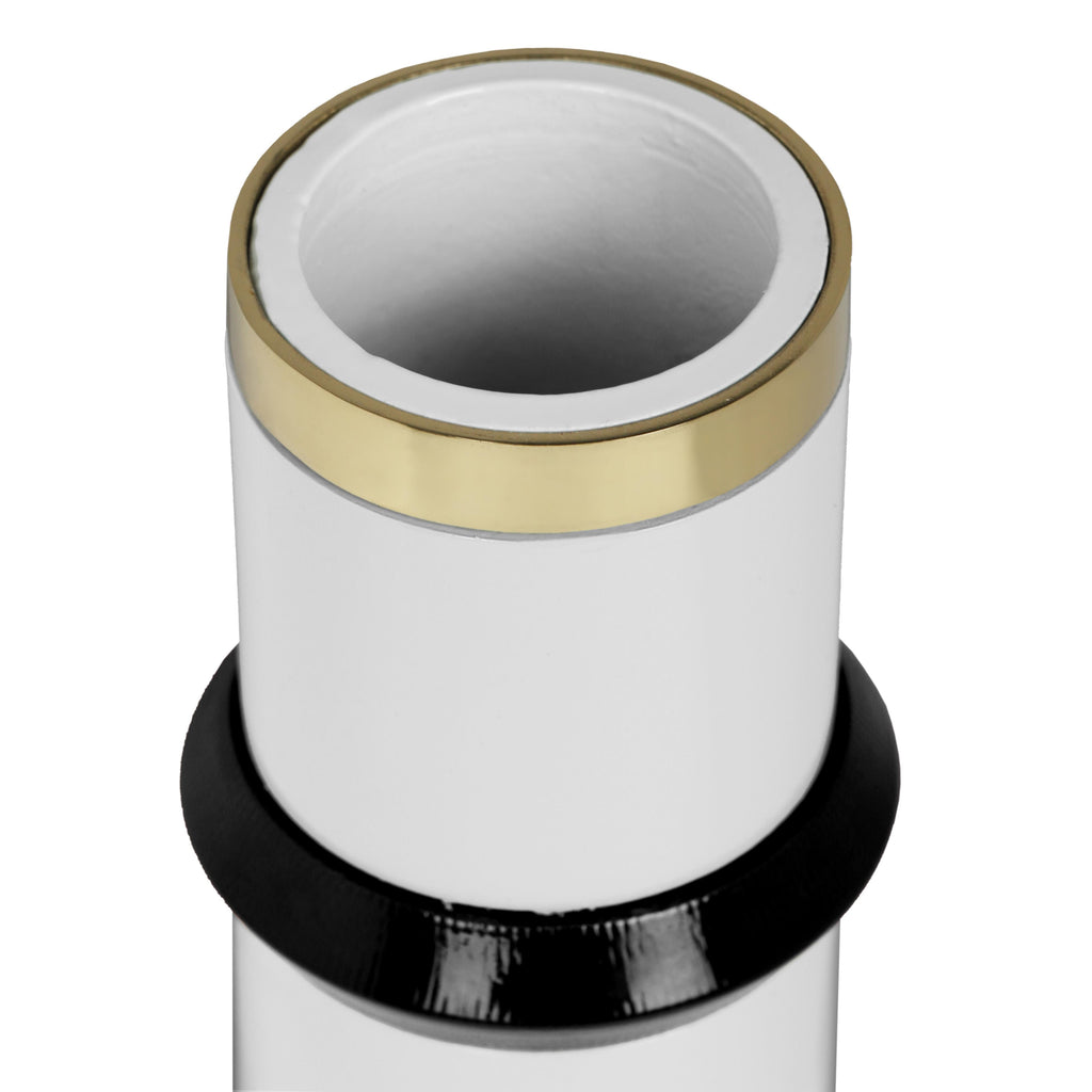 Go for the bold with the Kaonashi Vase, inspired by iconic Memphis postmodern style. Handmade by skilled artisans, this candelabra showcases impeccable craftsmanship. Constructed with a combination of iron and aluminum, it exudes both durability and modern flair. Available in black, burgundy, and mustard yellow, it offers a range of striking colors to complement your unique decor. Decorate your space with this standout piece that effortlessly combines form and function.