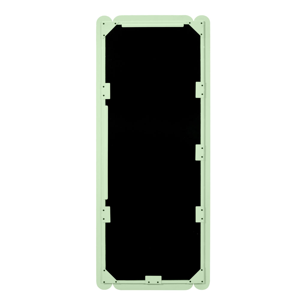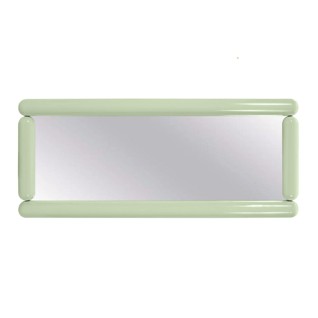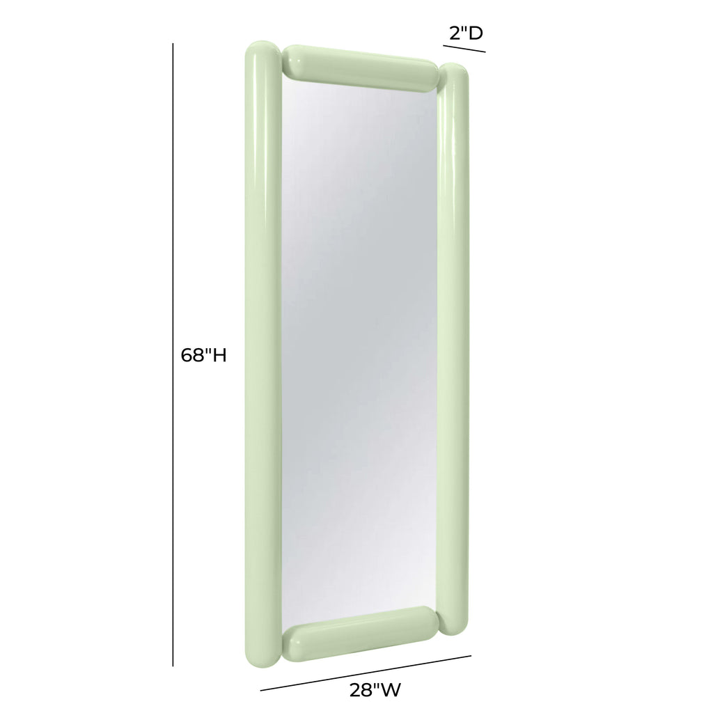 Step into a world of retro nostalgia with the Cozzi Floor and Wall Mirrors. Sporting a tubular metal balloon shape,... Step into a world of retro nostalgia with the Cozzi Floor and Wall Mirrors. Sporting a tubular metal balloon shape, these mirrors radiate a playful vibe that's perfect for adding a touch of sculptural charm to any room. Whether you choose the oversized floor mirror for a bold statement or the smaller wall mirror for fun-sized flair in bathrooms and cozy corners, each piece boasts a scratch-resistant high gloss finish in a myriad of pastel colors. With a sturdy metal substructure and an iron French cleat assembly bracket, these mirrors defy their weightless illusion, offering versatile hanging options that are as sturdy as they are stylish.Available in 3 color options - cream, pastel blue, or mint green Tubular metal in balloonesque style gives the silhouette the illusion of floating Available as a floor mirror or a wall mirror - perfect for living rooms, bedrooms, or entryways Iron french cleat assembly bracket provided Dimensions: 28"W x 2"D x 68"H View more