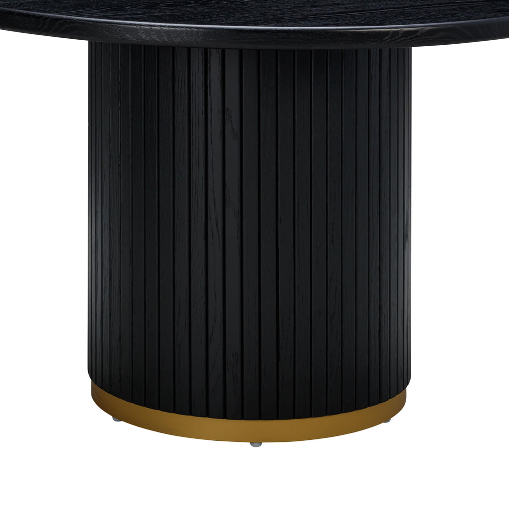 Durable and dreamy, the Chelsea dining table is a classic in every way. Its natural or black oak wood finish elicits vacation vibes while the brass base gives it that modest glow-up. Available in rectangle or round.