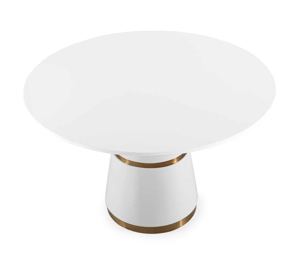 Our love for Hollywood Glam has inspired us to design the statement piece that is, the Rosa dining table. Featuring a conical base and round table top, its clean white finish is beautifully complimented with two gold stripes. Up to four people can dine comfortably on this stunning table.