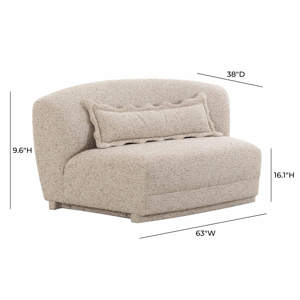 Introducing the Marion Two-Tone Textured Boucle Sectional, designed to shine from every angle; perfect for open living rooms where every side counts, even the back. Its playful, angled silhouette comes in two or three pieces, bringing both comfort and charm to your space. With graceful arched details and whimsical pillows, Marion is the must-have statement piece of the season.